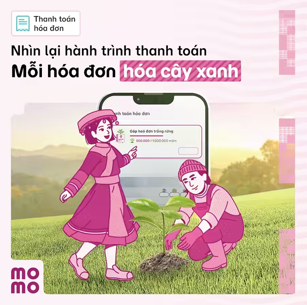 Mỗi lần thanh toán trên ứng dụng MoMo, bạn đang gieo một mầm xanh. Mọi hóa đơn được quy đổi thành “mầm cây”, đóng góp vào Dự án Tre Chống Lũ của TreeBank.